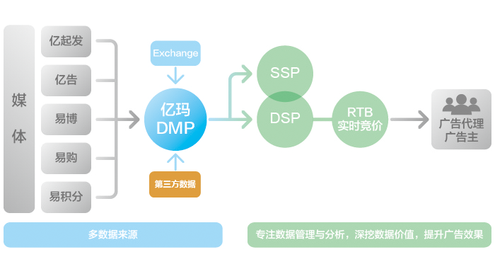 大數(shù)據(jù)驅(qū)動(dòng)廣告決策,隨著RTB(Real Time Bidding,實(shí)時(shí)競(jìng)價(jià))技術(shù)不斷發(fā)展,精準(zhǔn)化趨勢(shì)越發(fā)明顯,數(shù)據(jù)管理的重要性也日益凸顯。作為國(guó)內(nèi)大數(shù)據(jù)營(yíng)銷(xiāo)平臺(tái)領(lǐng)導(dǎo)者的億瑪,通過(guò)自建數(shù)據(jù)管理中心DMP(Data Managament Platform)以及多年業(yè)務(wù)積累的第一方、第二方及第三方數(shù)據(jù),對(duì)數(shù)據(jù)進(jìn)行整合、分析,達(dá)到對(duì)受眾的精準(zhǔn)投放,釋放數(shù)據(jù)的真正價(jià)值。